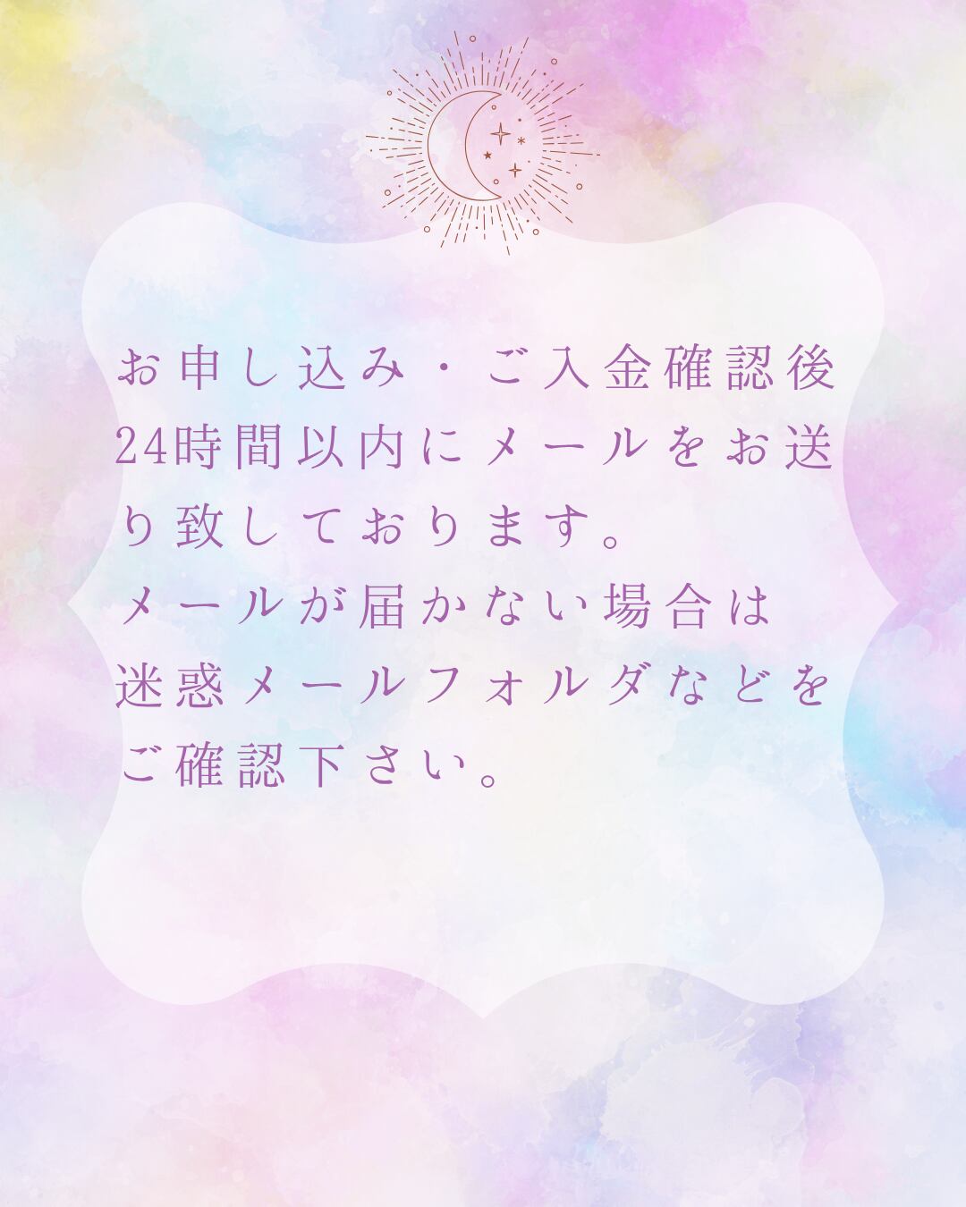 ご入金の確認がとれ次第、メールをお送りいたします