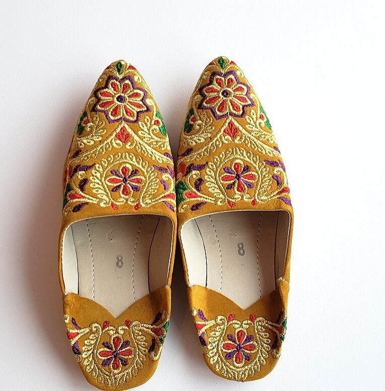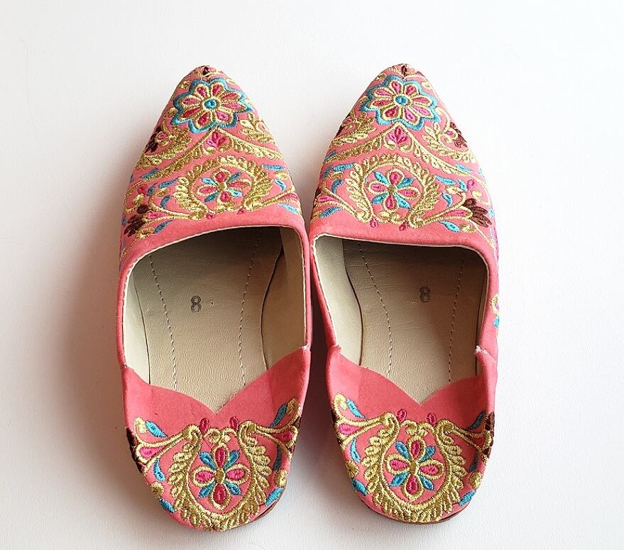 かかとを潰したデザインで、底はゴムになっています。かかと部のみ1㎝ほどの高さがありますが、ほぼぺったんこです。