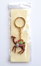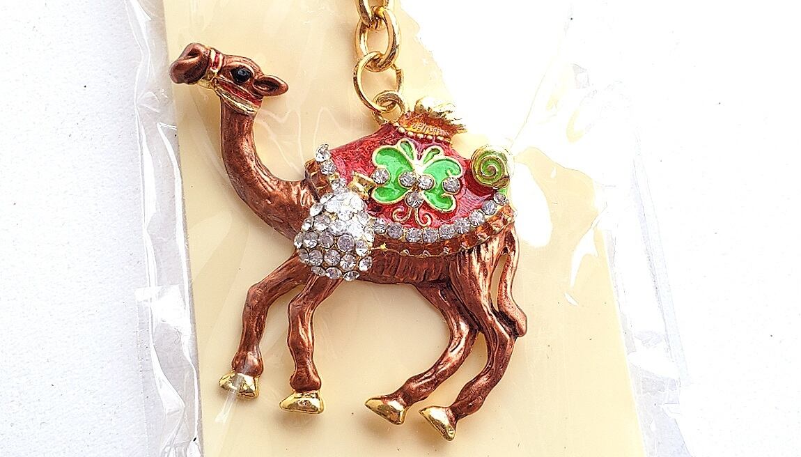 ヒトコブラクダに乗った荷物がラインストーンでデコレーションされている