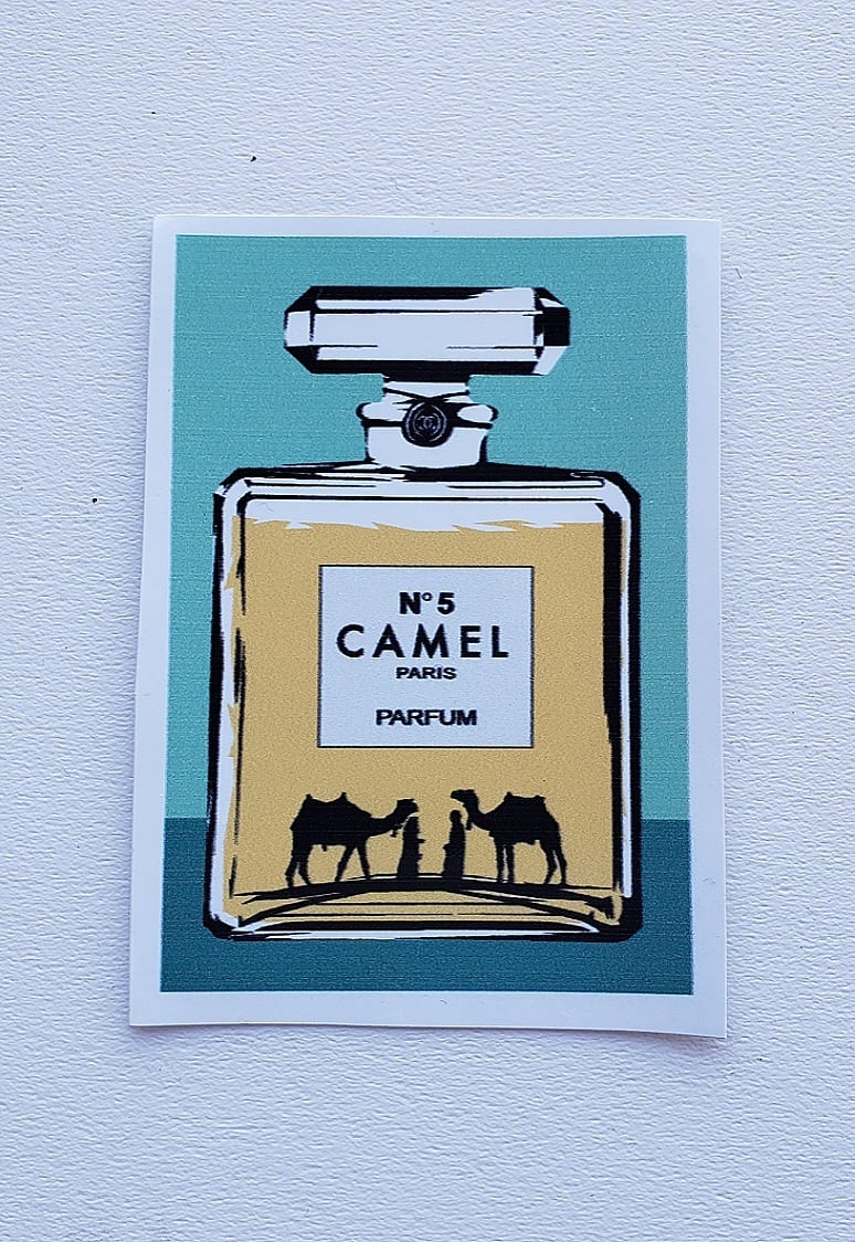 某有名ブランドの有名香水ビンにラクダのシルエットが描かれたステッカーです。