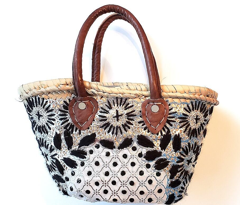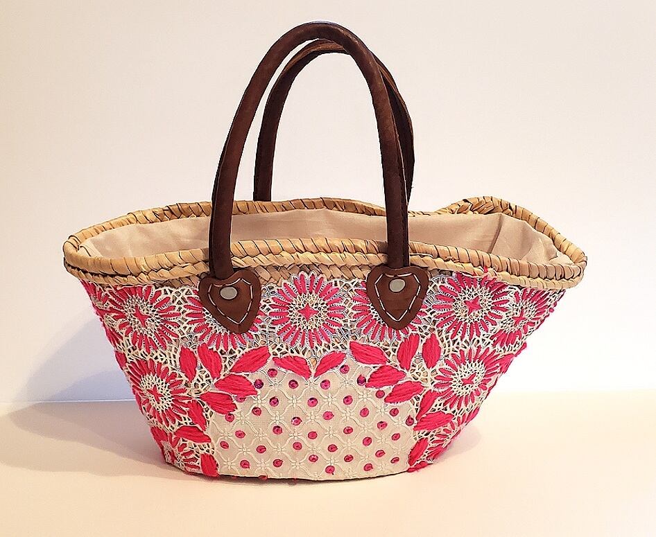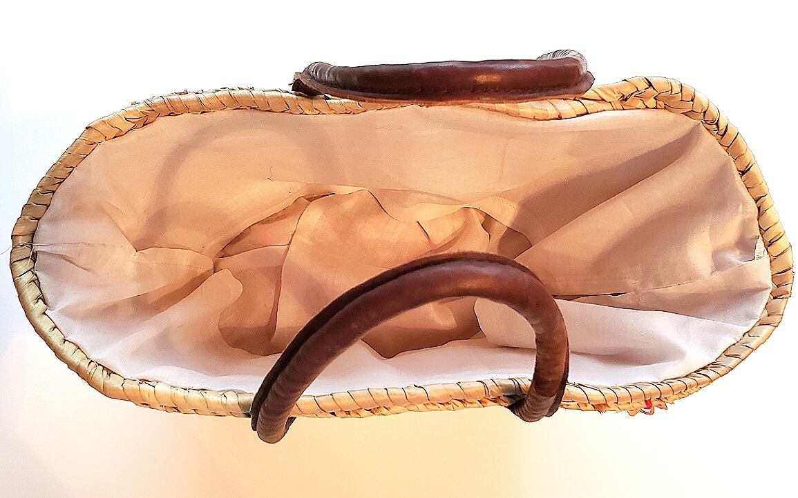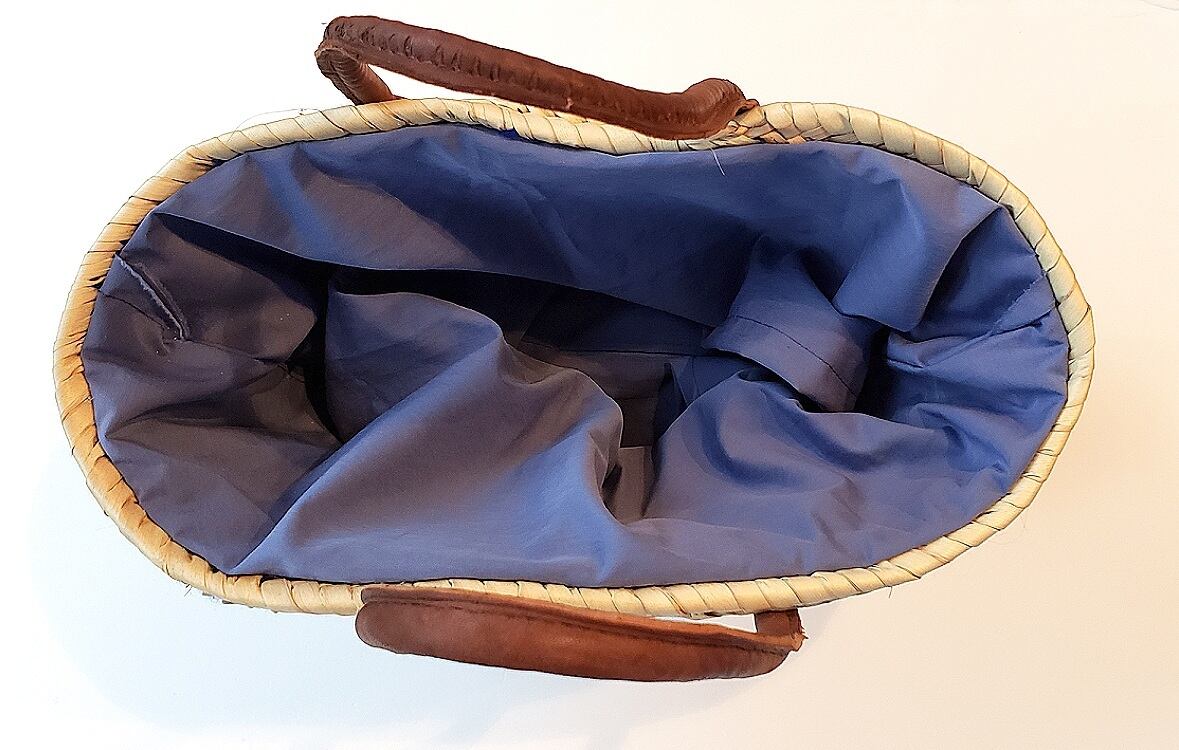ベースはかごバッグにテーブルクロスのようなビニールナイロンを巻いてあります