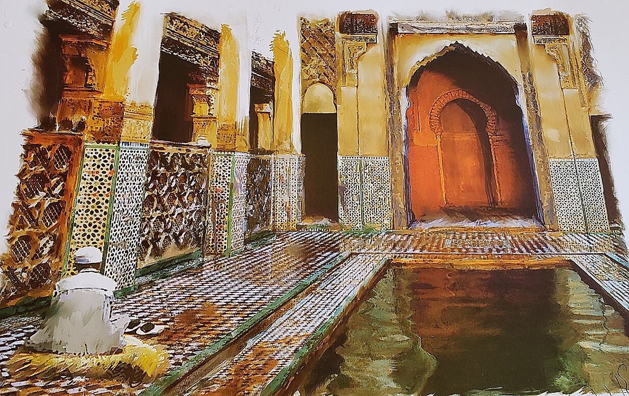 モロッコの街並みの中から 交流の場【ハマム】というサウナのような場所を描いています