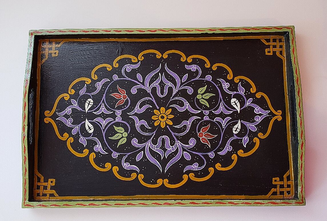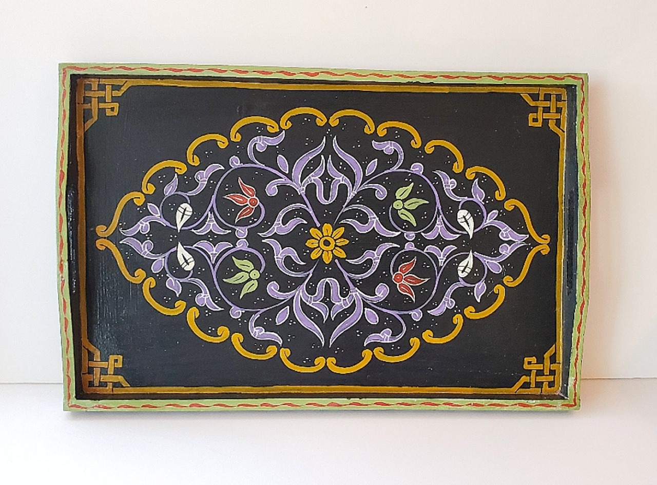 木製トレーに描かれたアートは1点ものです