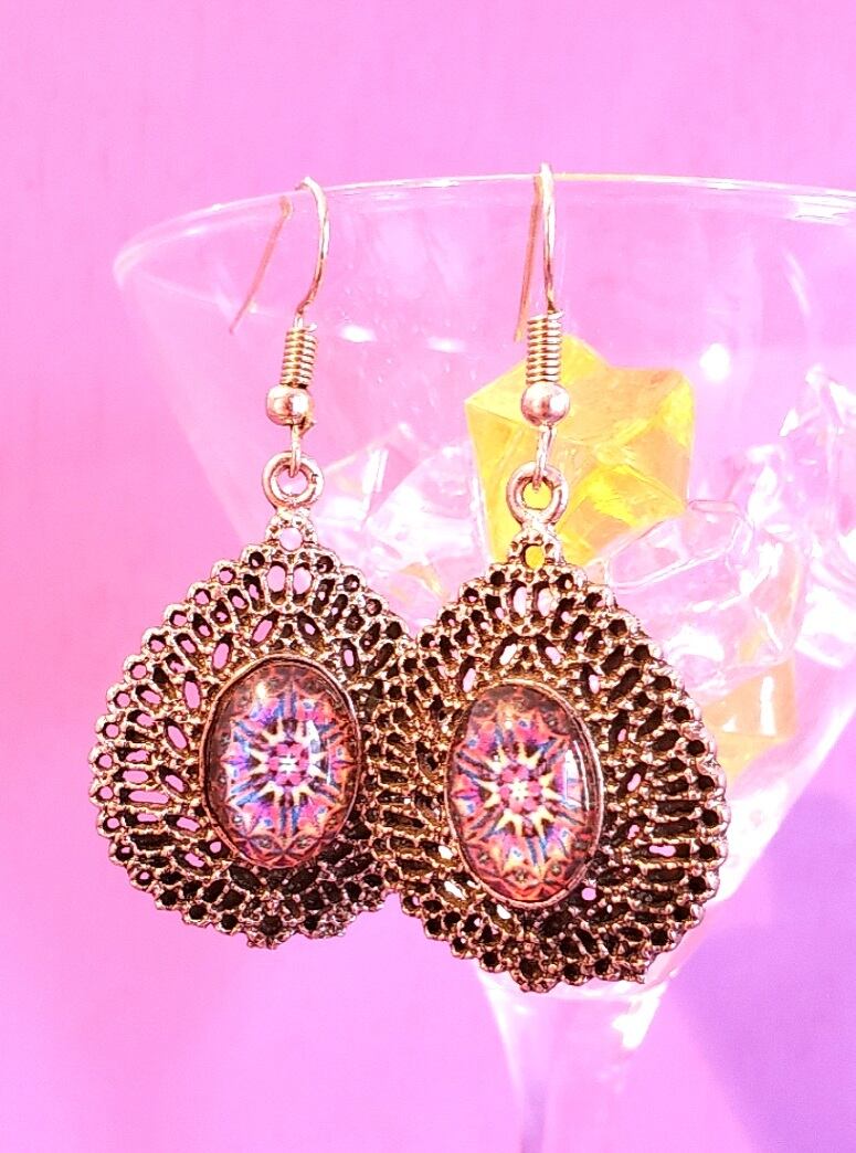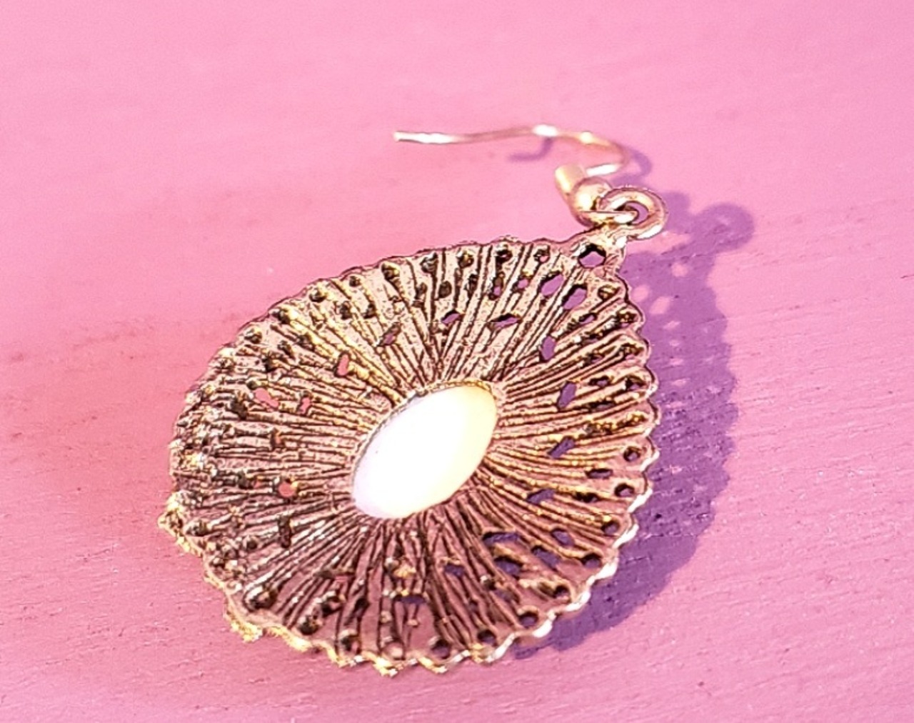 シルバーの金属素材に 飾りがついたアラビアンデザインのピアスです。