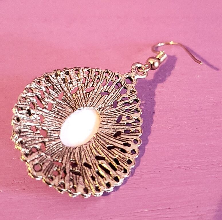 シルバーの金属素材に 飾りがついたアラビアンデザインのピアスです。