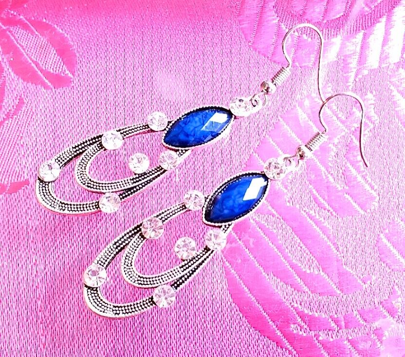 シルバーの金属素材に ラインストーンなどの飾りがついたアラビアンデザインのピアスです。